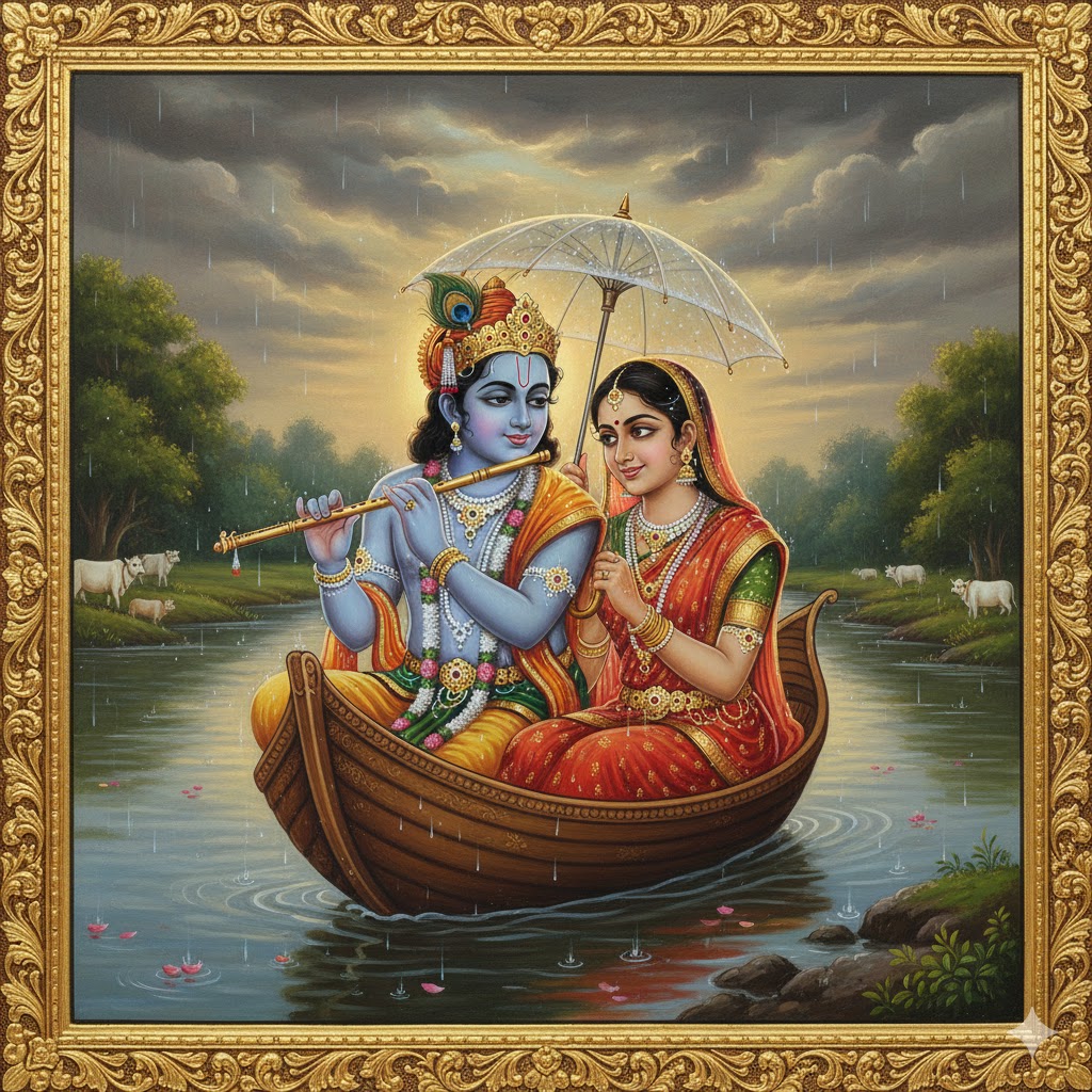 कृष्ण के कोमल स्पर्श की मधुर तरंग में, (കൃഷ്ണന്റെ കോമളമായ സ്പർശനത്തിന്റെ മധുരതരംഗങ്ങളിൽ,)